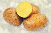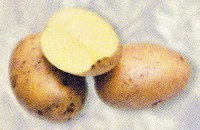 « Винета» — ранняя. Устойчива к нематоде, но чувствительна к вирусным заболеваниям. Кожура и мякоть светло-желтого цвета. Плоды имеют овальную форму с характерной сеткой на кожуре. Вкусная, не разваривается при варке. Мой любимый сорт.