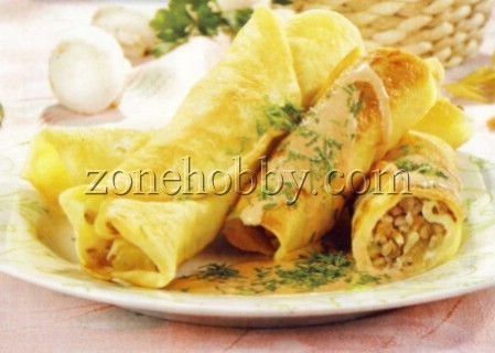 Тонкие блинчики можно приготовить и с другими начинками. Предлагаю вам две оригинальные начинки для тонких блинов: